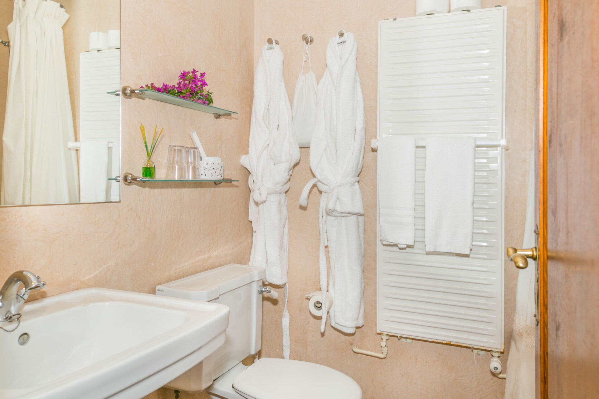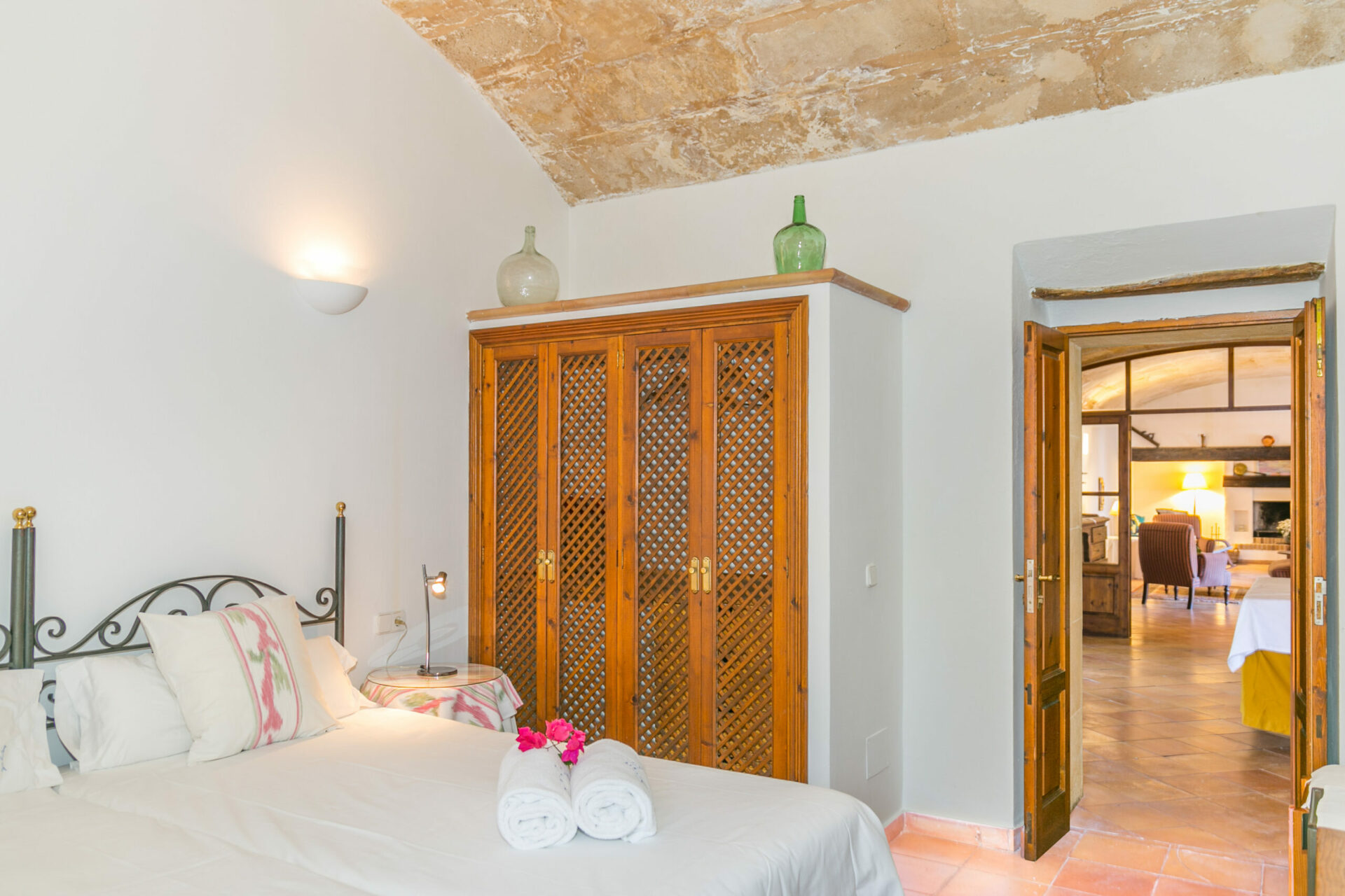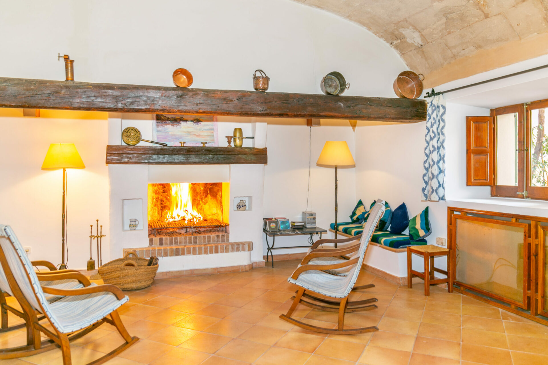 The finca offers four spacious bedrooms, each with its own ensuite bathroom, several lounge areas – including one with an open fireplace – and plenty of flexible spaces for working, relaxing or gathering together. All rooms are equipped with air conditioning and heating, satellite TV, and high-speed WiFi throughout, along with a fully equipped kitchen designed for extended stays.