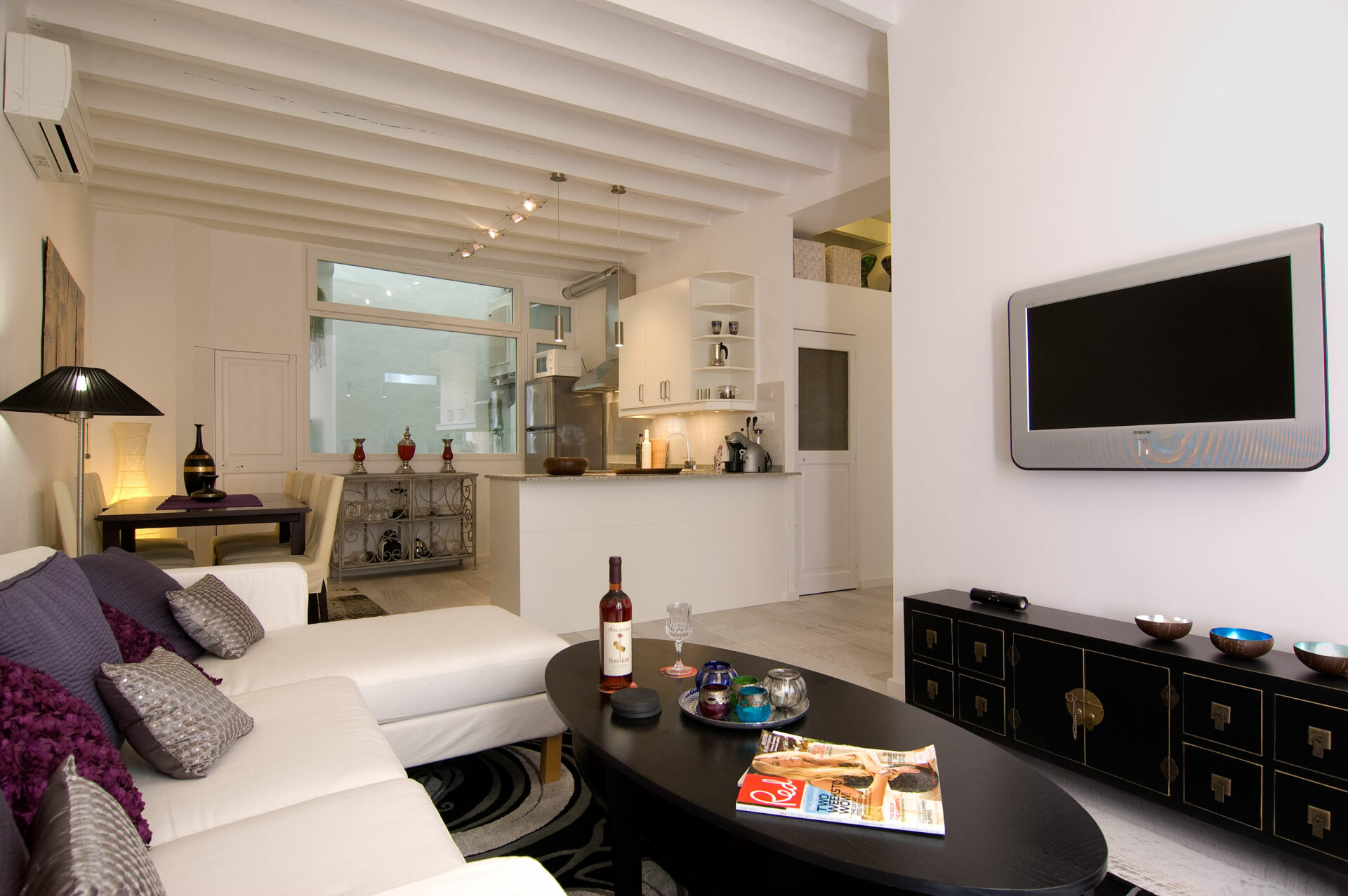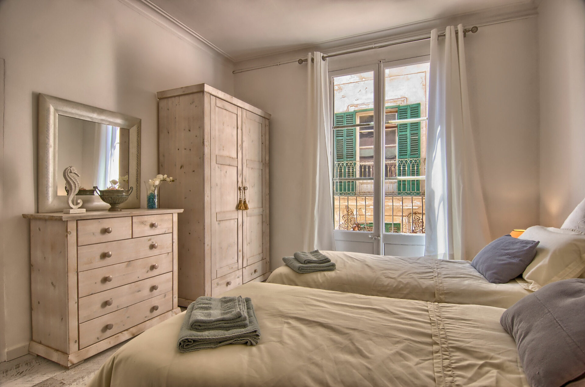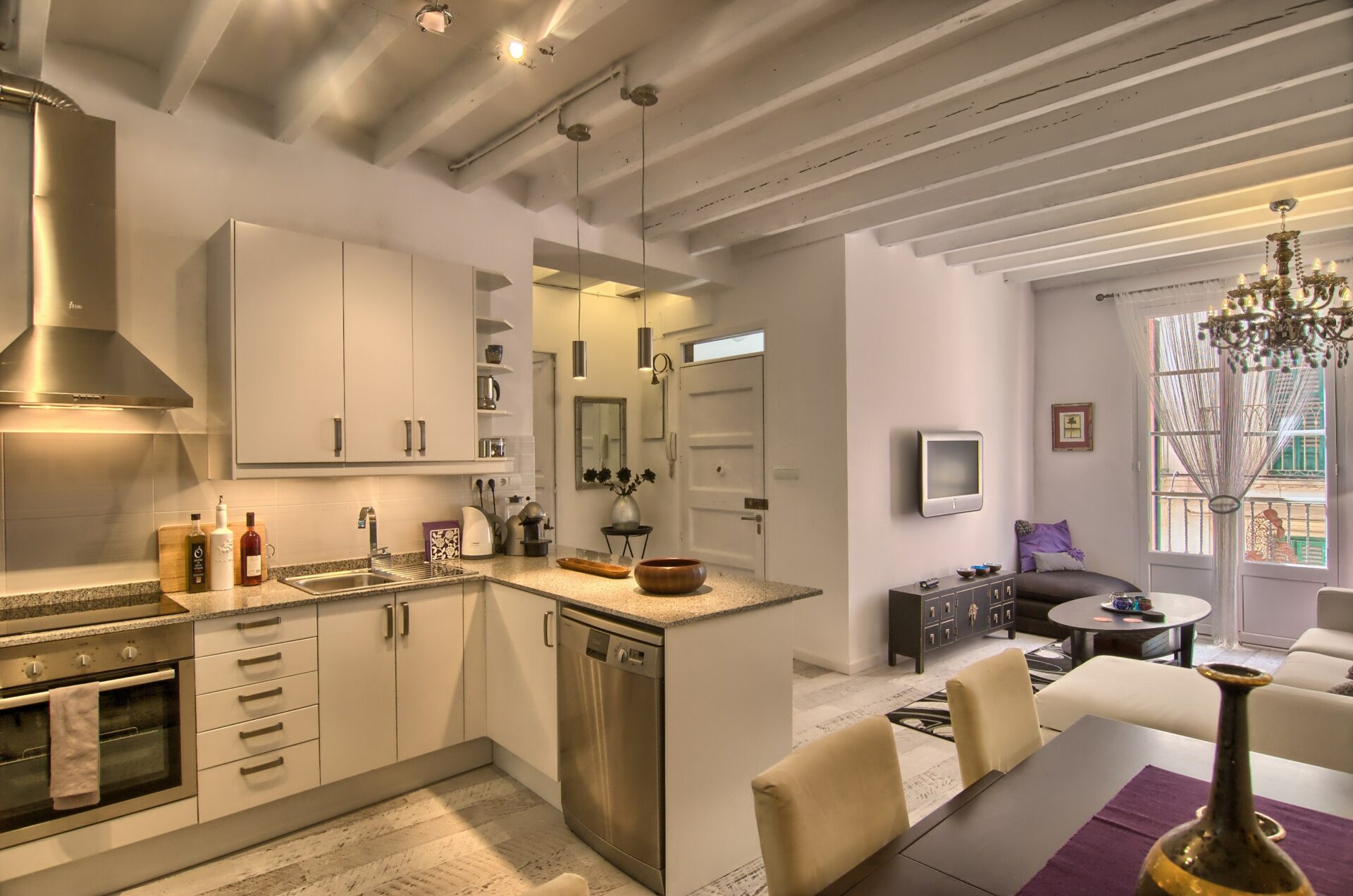 Cosy three-bedroom, two-bathroom loft apartment in Palma’s Old Town. It includes a spacious living room and a fully furnished kitchen.