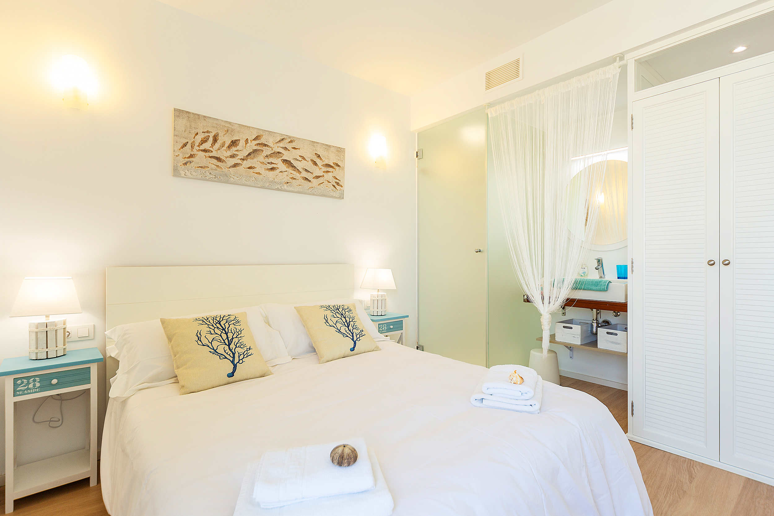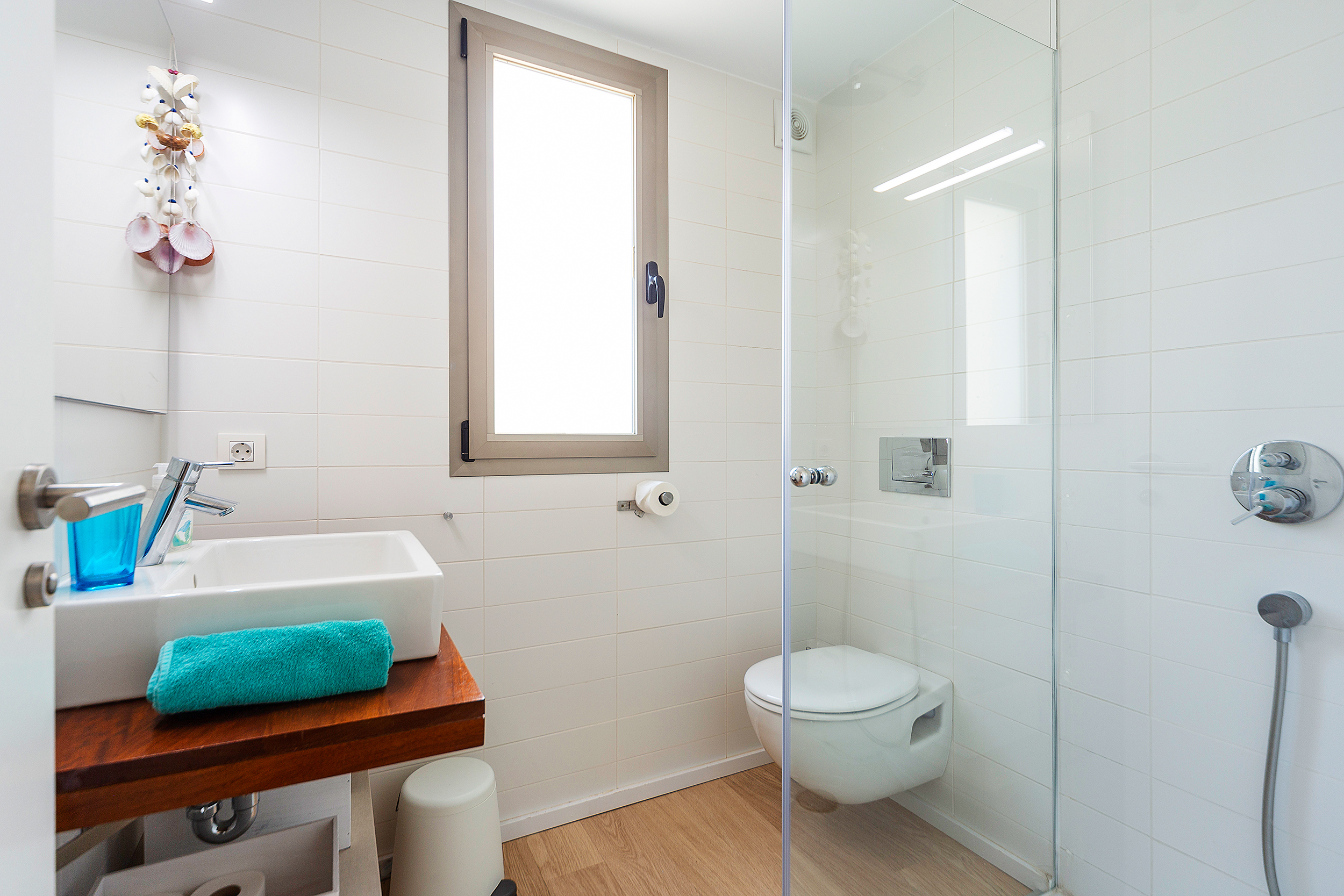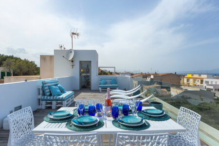 The highlight of the property is its sun terrace, perfect for enjoying Mallorca’s many sunny winter days. It is equipped with sun loungers, sofas, a dining table, chairs, a Weber gas barbecue, and an outdoor shower.