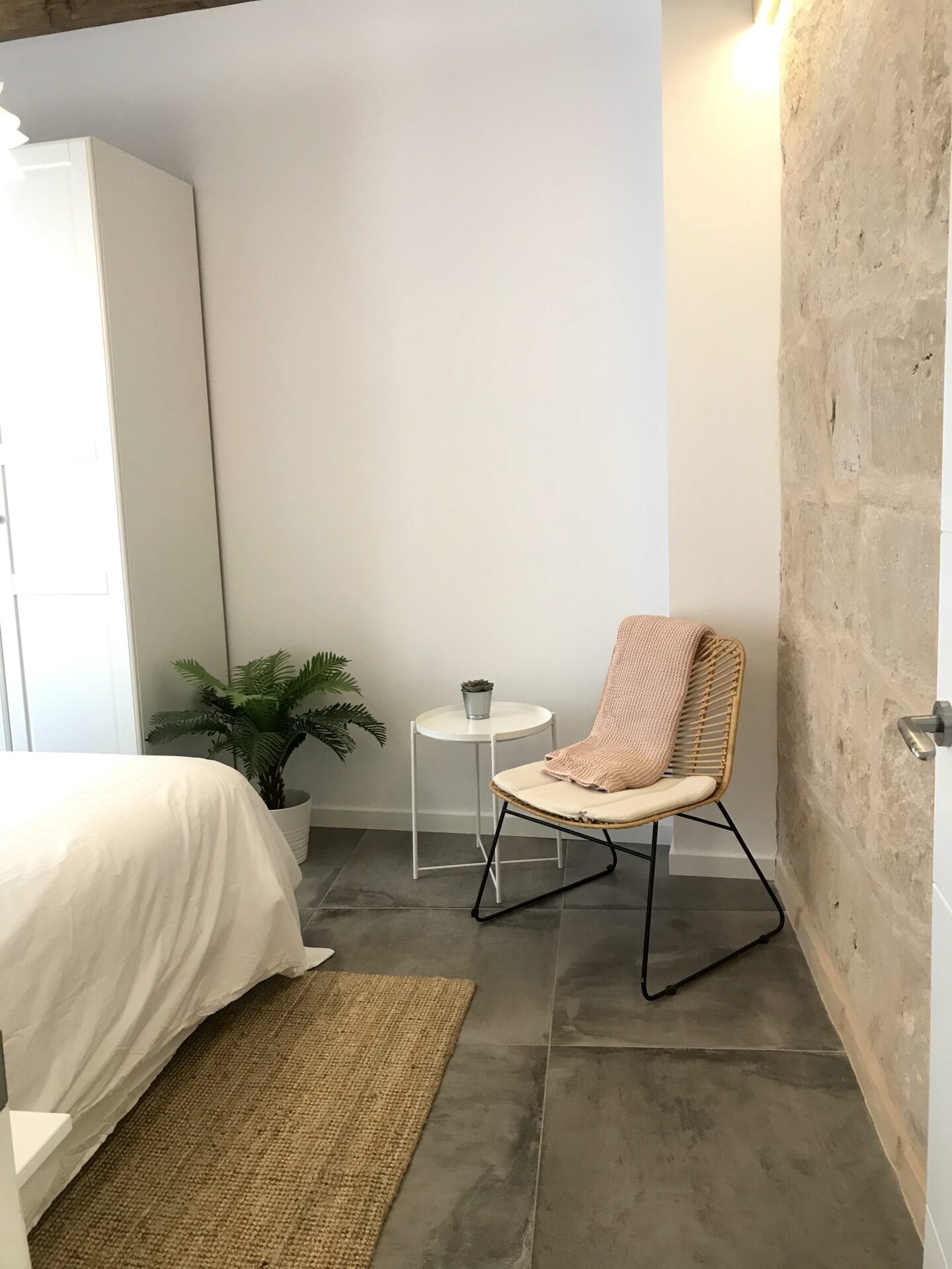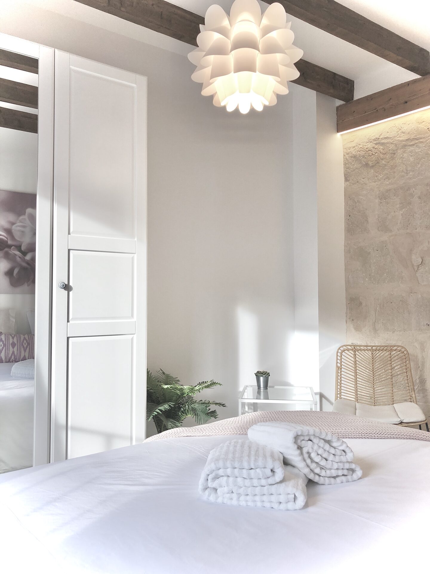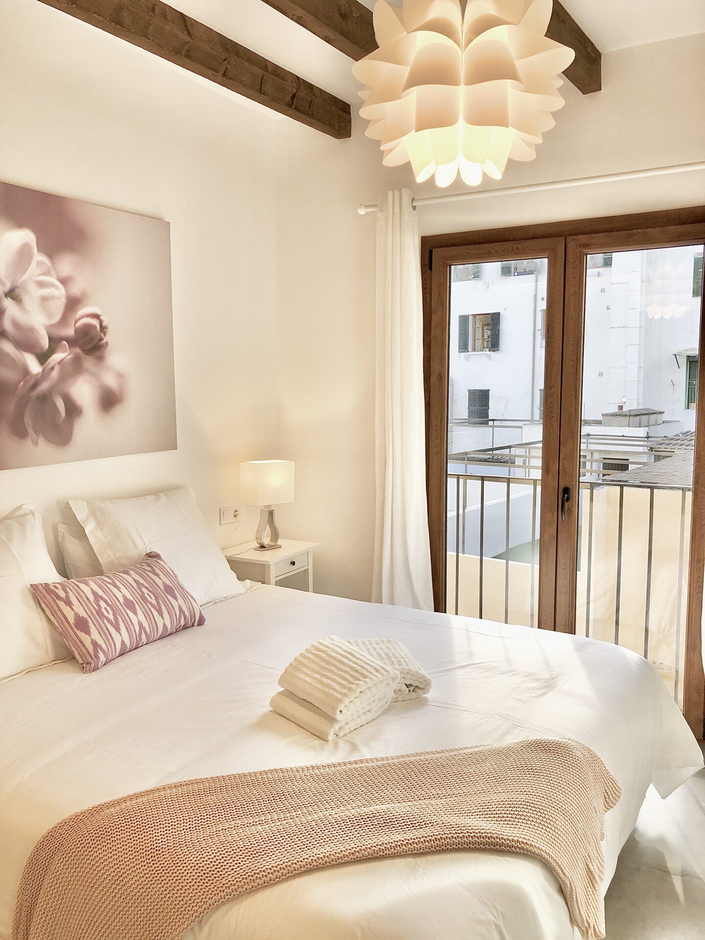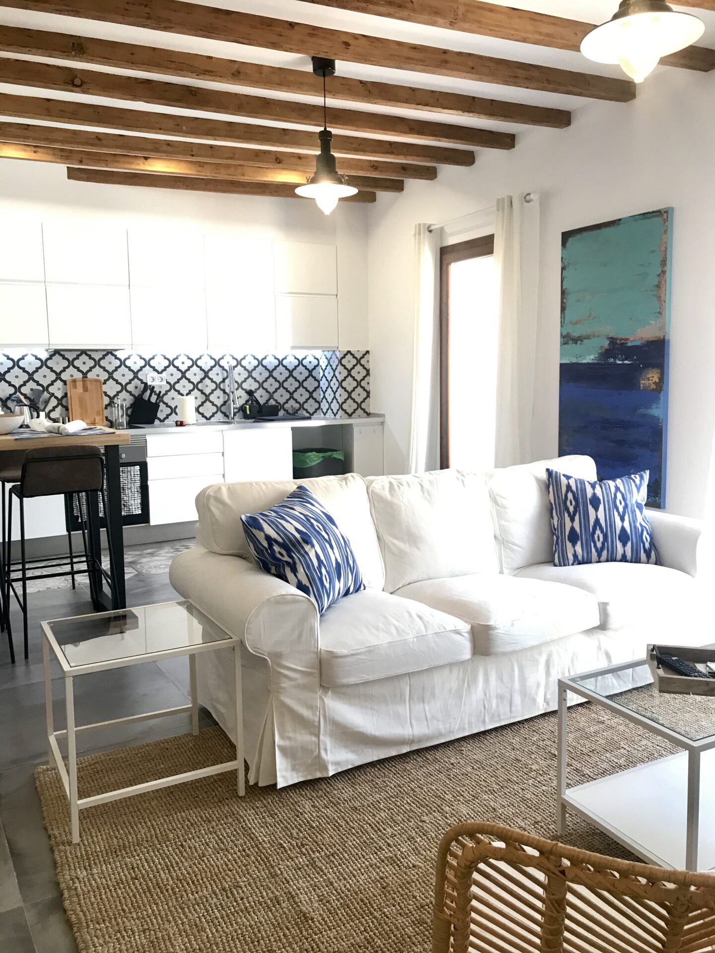 This stunning two-bedroom, two-bathroom apartment in the centre of Palma offers a perfect blend of modern style and charm. With a fresh white colour palette accented by vibrant pops of colour throughout, the space feels open and inviting. The apartment features beautiful beam ceilings that offer a natural approach to urban living.